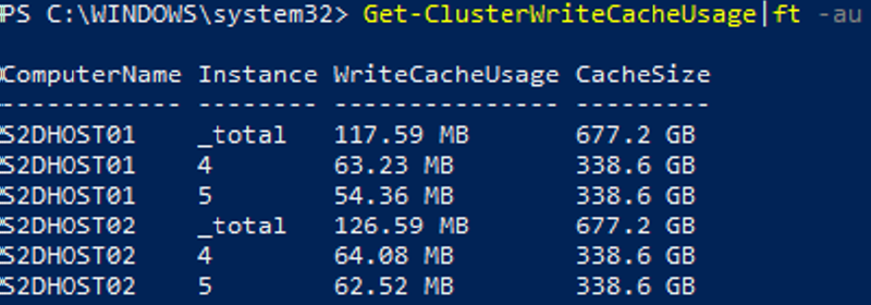Get-ClusterNode | Get-ClusterPerf -ClusterNodeSeriesName PhysicalDisk.Cache.Size.Dirty,PhysicalDisk.Cache.Size.Total
