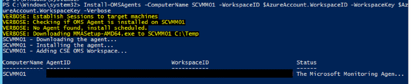 Install-OMSAgents -ComputerName Server01 -WorkspaceID xxxxxx -WorkspaceKey xxxxx
