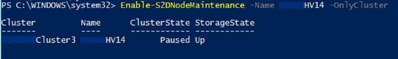 Enable-S2DNodeMaintenance -OnlyCluster